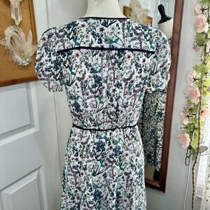 Embrace your inner cottagecore aesthetic with this charming Chelsea & Violet short sleeve dress! Perfect for spring and summer occasions, this white dress features a delicate purple and green floral print that gives it an enchanting farmhouse vibe. The classic button-down front adds vintage-inspired charm while making it easy to wear. Skirt has a little flair at the bottom for a flattering shape; especially on fellow pear shaped babes!