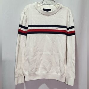 Tommy Hilfiger Boys White Crewneck Pullover Cotton Sweater Size Medium (8/10)