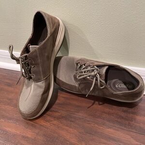 Experience the perfect blend of style and comfort with OluKai's brown oxford shoes. Crafted with a suede-like upper and a traditional lace-up design, these shoes offer a versatile look suitable for both casual and business casual settings. The lightweight sole provides added comfort, making them ideal for everyday wear. They have a step-on option for the heel if you’re going more casual. Worn once or twice, fantastic condition.