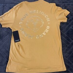 Experience the perfect blend of style and comfort with this True Religion yellow short sleeve tee. Crafted from high-quality materials, this shirt features a classic crew neckline and a subtle logo detail, making it a versatile addition to any casual wardrobe.