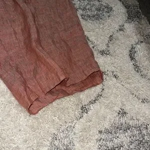 Excellent condition red linen Flax pants. Flax linen pants are so versatile!! Obviously great in hot summer months (I’m in Texas so I mean HOT), but also good with some layers in cooler months. Elastic waist is VERY comfy. Really lovely red color. Look at the photos close up for details.