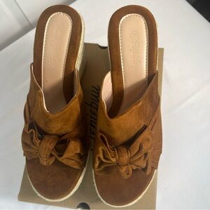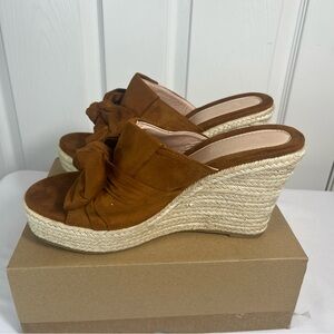 Brown Platform Espadrilles Slip On Wedge Sandals Bow Tie Womens 8.5 New