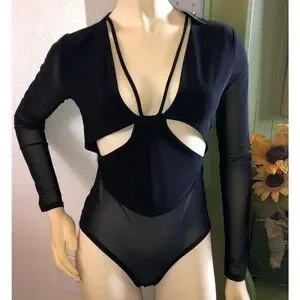 NWT Fashion Nova Black Bodysuit Top with cutouts Super Sexy!! Small S