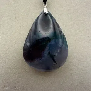 Purple ocean jasper pendant necklace on silver 925 bail with 18” silver stainless steel box chain. Lobster clasp closure.