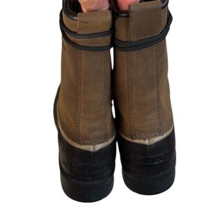 EUC Sorel Leather Emelie 1964 Boots Waterproof Khaki Black Size 10.5 Rtl. $160