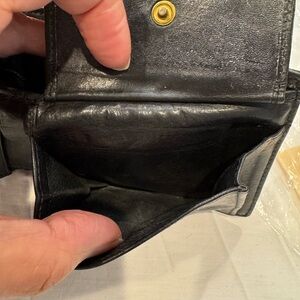 Elegant black woven leather wallet. Perfect for everyday use. The leather on inside coin pocket has some scratches but other than that there’s no other flaws to mention. The corners are good without rubs, the woven leather has no damage and inside is clean without peelings or unpleasant smell.
