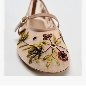 Embroidered Floral Mesh Ballet Flats