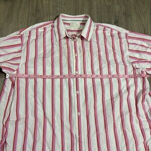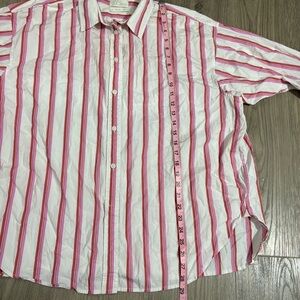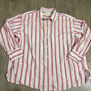 J Crew Poplin Shirt Top Pink White Stripe Relaxed Fit Washed Cotton Sz 20 Preppy