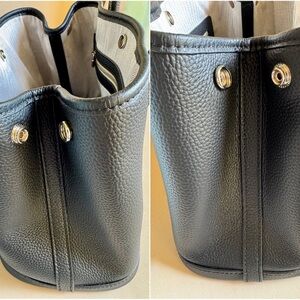 This is such a luxurious bag. It’s in like new condition. It still smells like new also. I only used this bag twice. Small handheld or shoulder option bag. It’s a dupe for that super expensive brand in the style Negonda Garden Party 30. Made of real cow leather and it is very well made! Sturdy bag. Bought personally by me from the Rareeka store in Osaka, Japan. They sell fantastic quality goods that are dupes for high end luxury brands, but exclusively made in Japan. This is a great bag to try out before splurging on that ultra expensive option brand. Or if you are one for quiet luxury, this is also a nice choice. Clean, crisp and classic look. It doesn’t have any labels, all you get is quality. Another plus with this bag is that it includes a two color shoulder strap and a pouch that can double as a cosmetic pouch or to keep your essentials. The sides can also be unsnapped to expand for more room. Please ask questions before buying to avoid misunderstandings. All sales final.