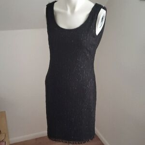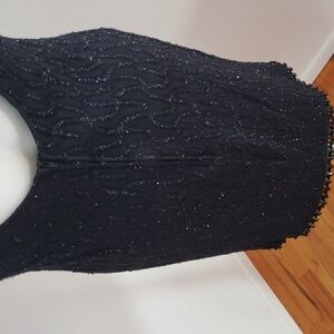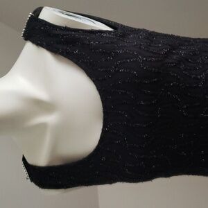 Amanda Taylor Vintage Black Beaded Sleeveless Dress with Beaded Seam Detail