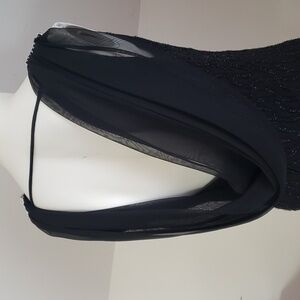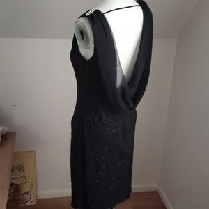 Amanda Taylor Vintage Black Beaded Sleeveless Deep Back Shawled Dress Sz 6