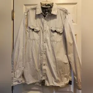Buffalo Men's Casual Light Gray Button-Up Shirt, Size L