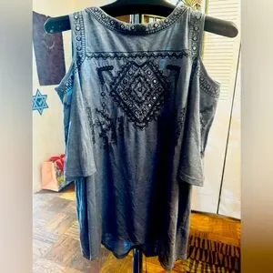 Chico’s Embellished Gray Cold Shoulder Top