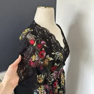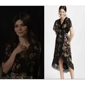 Alice Olivia Adele Full Wrap Floral Lace Midi Dress