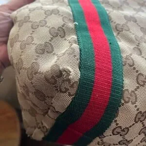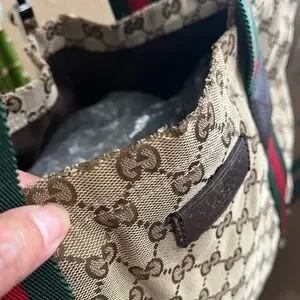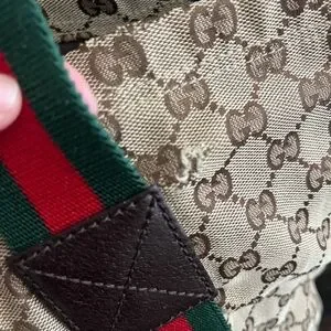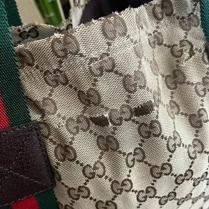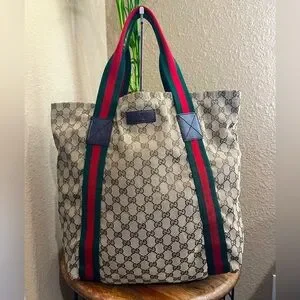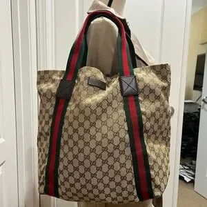 -canvas tote with iconic Gucci red and green straps