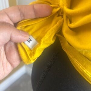 New without tags, and missing brand tag as shown. Bright yellow graphic t-shirt with bold lettering. Casual and stylish.