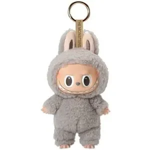Adorable gray monster keychain plush. Features a cute face and fluffy texture.
