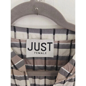 Just Female Anthropologie Midi Soon Plaid Taupe Organic Cotton Dress 36 Small S
