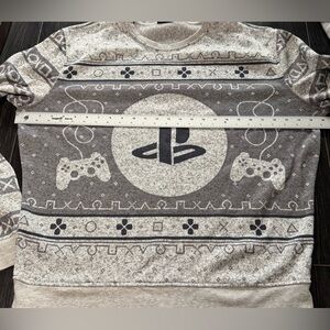 Embrace the fusion of gaming culture and winter fashion with this Sony gray crewneck sweater. Featuring a classic Nordic pattern and the iconic PlayStation logo, this sweater is perfect for cozying up during the colder months. Its knit material ensures warmth and comfort, making it an ideal choice for both gaming sessions and casual outings.