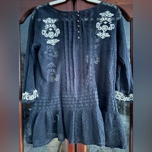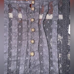 Free People Jocelyn Small Black Mesh Tunic Swiss Dot Pleated White