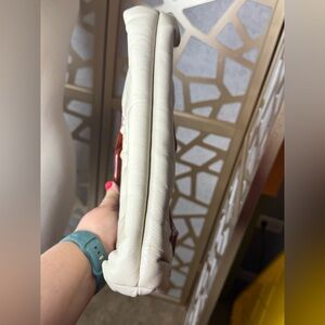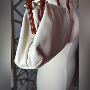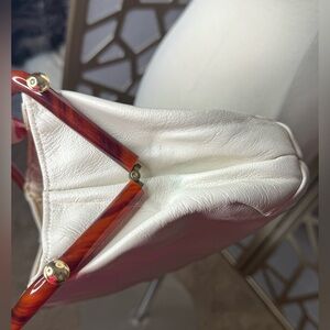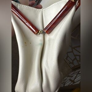Ivory leather purse with double bakelite handles