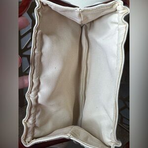 Purse measures 11.5" wide x 6.5" tall; handles add a 3" drop
