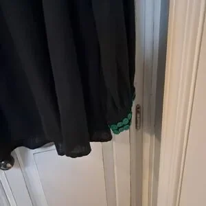 Double D Ranch Black Top Blue Embroidered Turquoise Button Embelish Sheer