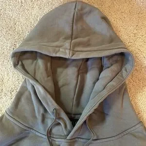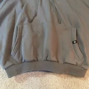 Good used condition. The front pocket has some loose stitches on one side. There is a bit of fading but this hoodie still has a lot of life left. Just find myself reaching for a different color more.