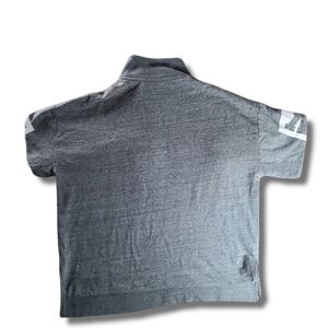 Super cute quarter-zip sweatshirt. Heathered Grey with white logos down the arms and dog logo on the lapel. Fully functioning zipper.