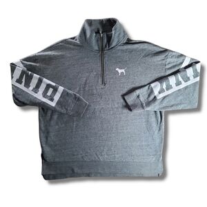 VS PINK Grey White Quarter-Zip Pullover Sweatshirt