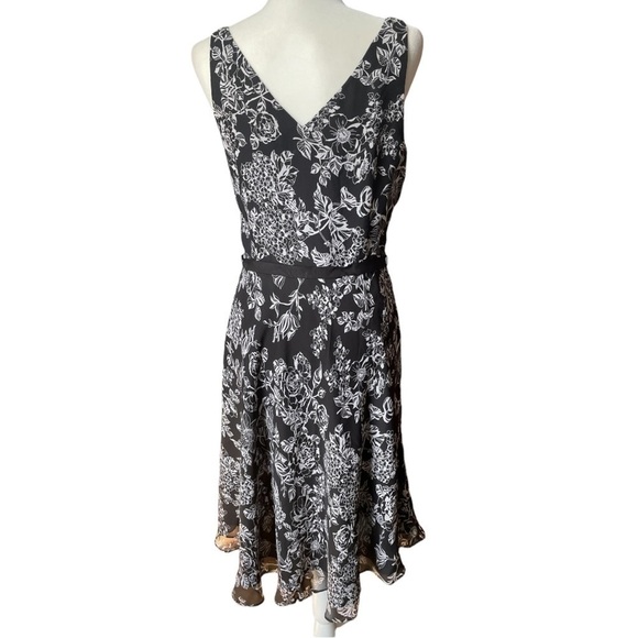 LOFT Black, And White Floral Print Sleeveless Dress 8