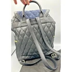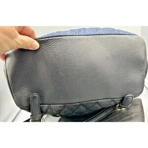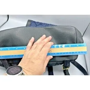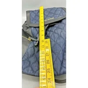 This Vera Bradley backpack is a stylish and functional accessory for any woman. The exterior is made of genuine black leather with navy denim detailing, and features a gold hardware accent. The bag has an adjustable strap for comfortable wear, and measures 11" in width, 15" in height, and 5" in depth. The large size makes it perfect for carrying everyday essentials, while the leather lining adds a touch of luxury to the bag. The backpack is part of the Vera Bradley Leather product line, and is sure to be a favorite among women who love fashion and functionality.