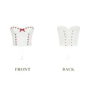 Beautiful great quality white corset top with lace back and red ribbon details.