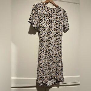 Boden Knit Patterned Short Sleeve Dress. Size 14R. Approx flat lay measurements: Pit to pit 19.5” and shoulder to hem 38”. Not a true wrap, just gathers and ties on the side. In excellent preloved condition. Pet free, smoke free home.
