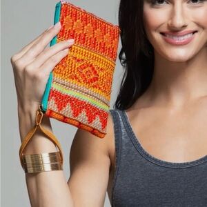 Handbeaded Bohemian Vibrant Orange and Teal Women's Clutch NWT