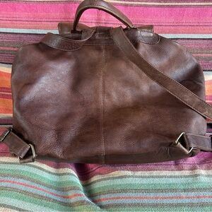 This Bruno Rossi brown genuine leather backpack is beautiful. It is a stylish and spacious travel rucksack designed for both casual and workwear occasions. Made from high-quality genuine leather with brass hardware accents, this large rectangular backpack features a solid brown exterior with a zip, latch, and drawstring closure. The adjustable shoulder strap in brown leather adds a touch of western flair to the design, perfect for those who appreciate a blend of Italian and preppy style. Ideal for unisex adults looking for a versatile and durable backpack for everyday use.