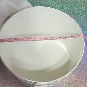 14" across, circle. 7.5" deep