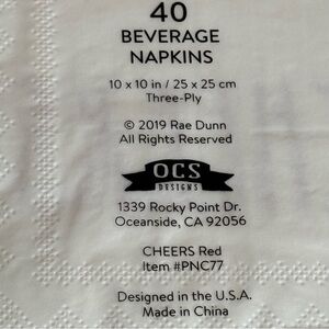 NEW SET of 2 Packs of 40 count Rae Dunn CHEERS Beverage Napkins (80 Total)