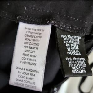 Very classic look with this Black Nine West Pencil Skirt. Zips on the side. It's slightly longer in the back. The fabric is stretchy.