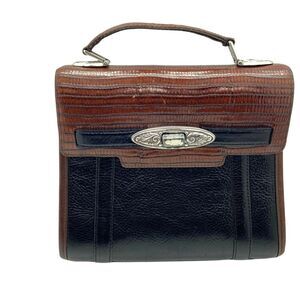 Brighton Handbag Purse Retro Women's Black Brown Leather Classic 8"x 9"x 3.5"