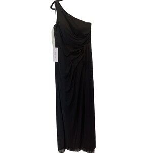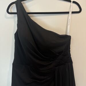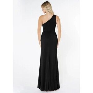 Azazie Jhene One Shoulder Pleated Side Slit Maxi Dress Black Size A10