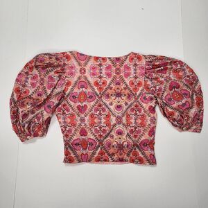 Olivaceous Floral Crop Top Size Small Balloon Sleeve Romantic Feminine Pink