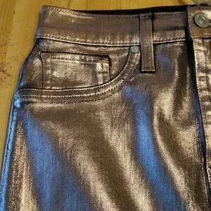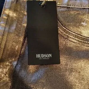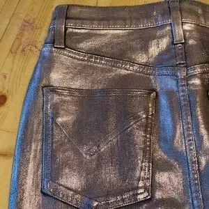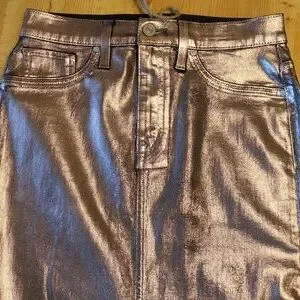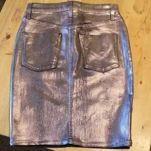 Elevate your style and turn heads with the NWT Hudson Centerfold skirt. This high-waisted, mini pencil skirt boasts a stunning metallic champagne color that adds a touch of glamour to any outfit.