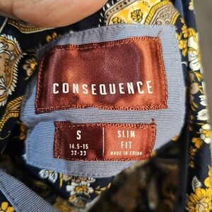 CONSEQUENCE Slim fit size small men Paisley shirt.