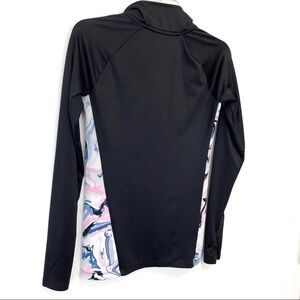 Iridescent Watercolor Swirls Panel Sides – Zipper Front – Thumb Holes In Sleeve – Blue Pink Black