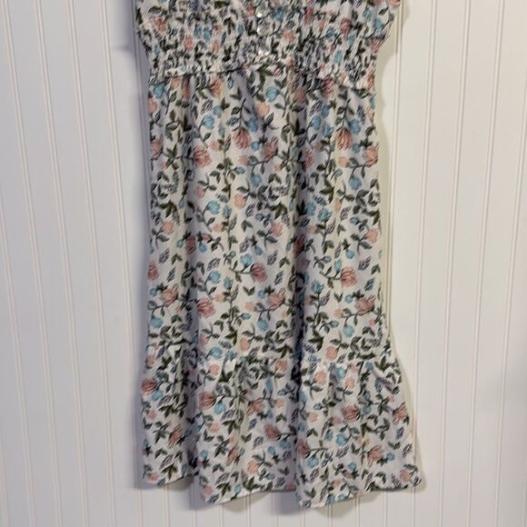 NWT GOGO Time To Bloom Floral White Cap Sleeve Midi Dress Ruched Tiered