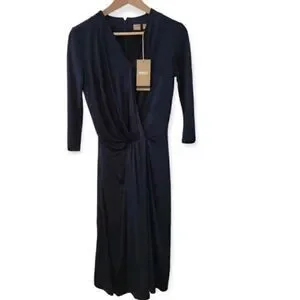 BOSS Hugo Boss Exandria V-neck Faux Wrap Midi Dress Navy long sleeve $348