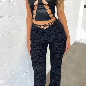 Astrid is cut from a signature Outcast exclusive burnout mesh fabrication. Featuring a comfortable lining, Astrid is designed with strapping detail at the v-shape waist line to add intricacy to the design and flatter your figure! Sitting at a mid-rise, with a slightly flare leg, you won't ever want to take our Astrid Pant off!