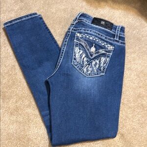 Miss Me Hailey Skinny Jeans with Ornate Stitching and Rhinestone Embellishments