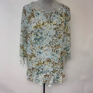 Old Navy Blouse Maternity SZ M Sheer Blue Floral Feminine Delicate Bohemian